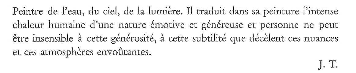 Guy LAMY, poète du ciel, de l’eau et des atmosphères, peintre des instants fugitifs et des nuances, interprète choisi des allégresses et des mélancolies secrètes de la nature. »